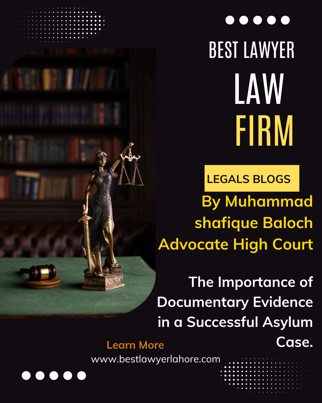 At www.bestlawyerlahore.com, we are committed to helping Pakistani asylum seekers navigate the complexities of the asylum process. With our guidance and expertise in collecting and presenting documentary evidence, you can significantly improve your chances of success.Get in Touch Today If you need assistance with your asylum case or have questions about gathering documentary evidence, don’t hesitate to contact Advocate Muhammad Shafique Baloch. We’re here to help you build the strongest possible case.- Website: www.bestlawyerlahore.com- WhatsApp: 0321-4960782– Office Address: Office No. 3, Basement, Miccop Centre 1, Mozang Road, near AG Office Chowk, Lahore.